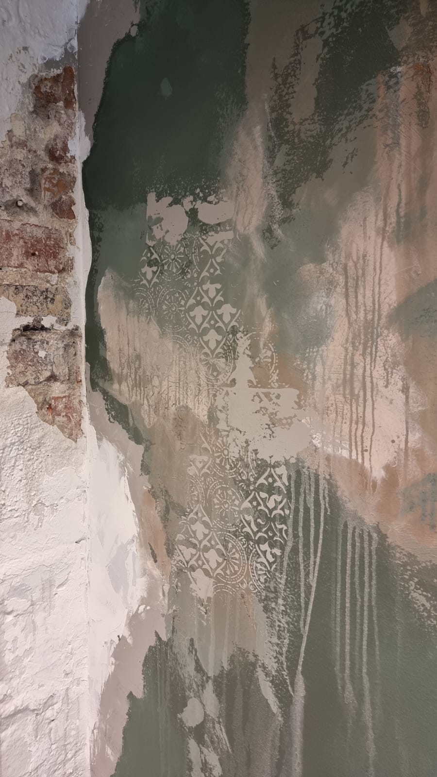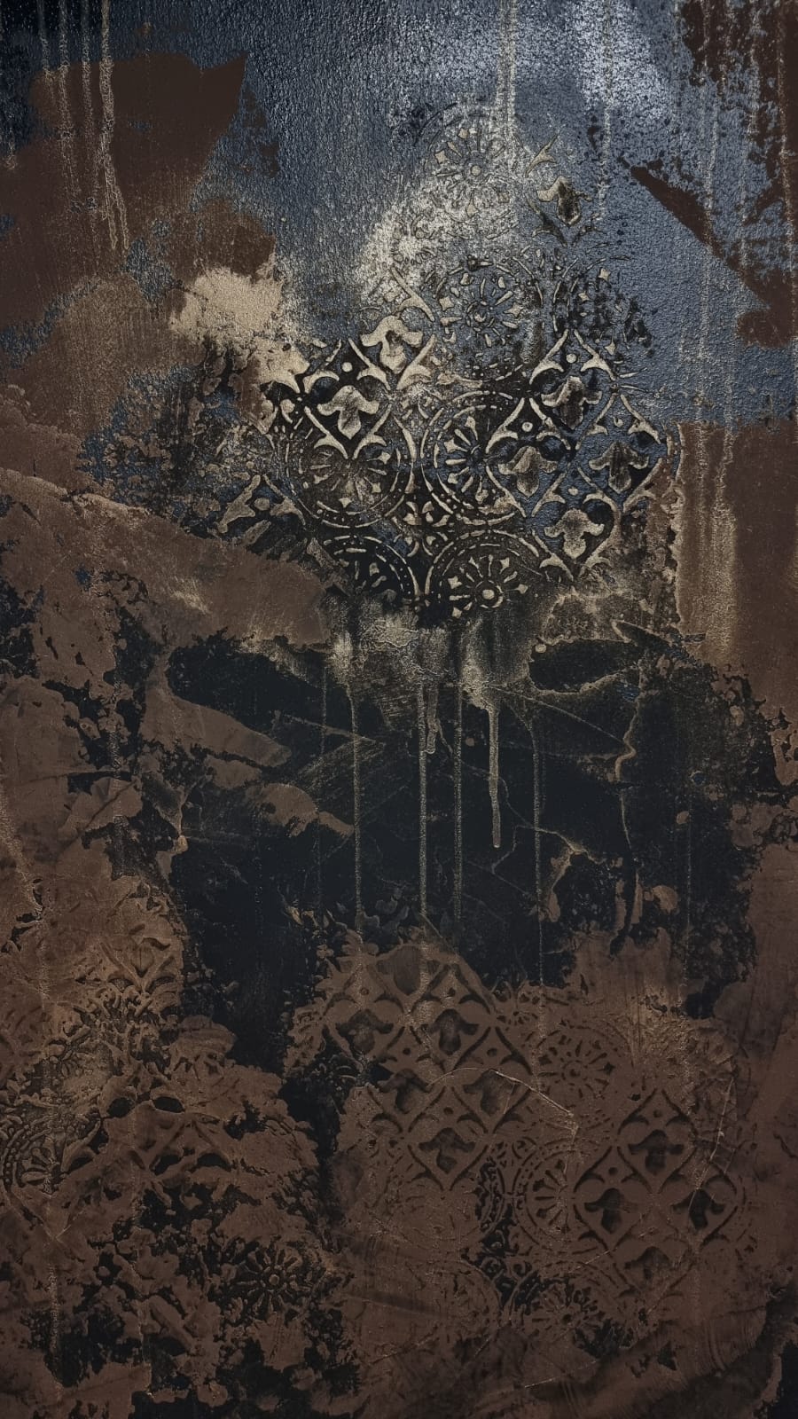 • tumma ja dramaattinen seinä taiteellisilla yksityiskohdilla