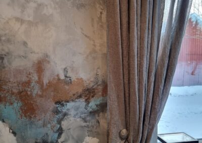 Työskentelen aina tilan toiminnallisuuden ja tunnelman mukaan. Ensin käymme läpi värimaailman, materiaalit ja toiveesi. Sen jälkeen suunnittelen luonnoksen, jota voimme yhdessä muokata. Lopullinen maalaus toteutetaan korkealaatuisilla maaleilla ja menetelmillä, jotka kestävät katsetta ja aikaa.